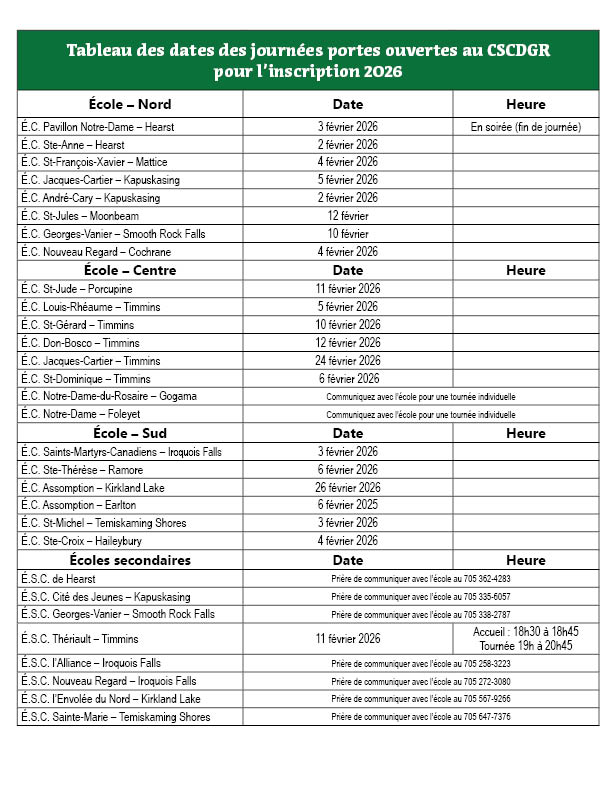 journées portes ouvertes au CSCDGR pour l’inscription 2026